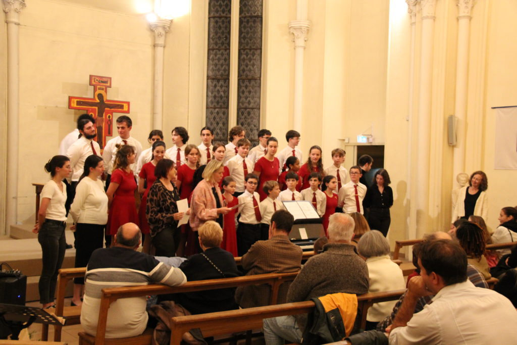 La Prière d’Anguelos a ensuite résonné dans la chapelle, portée par les voix unies des anciens et des nouveaux choristes, dans une atmosphère de recueillement et de joie partagée.